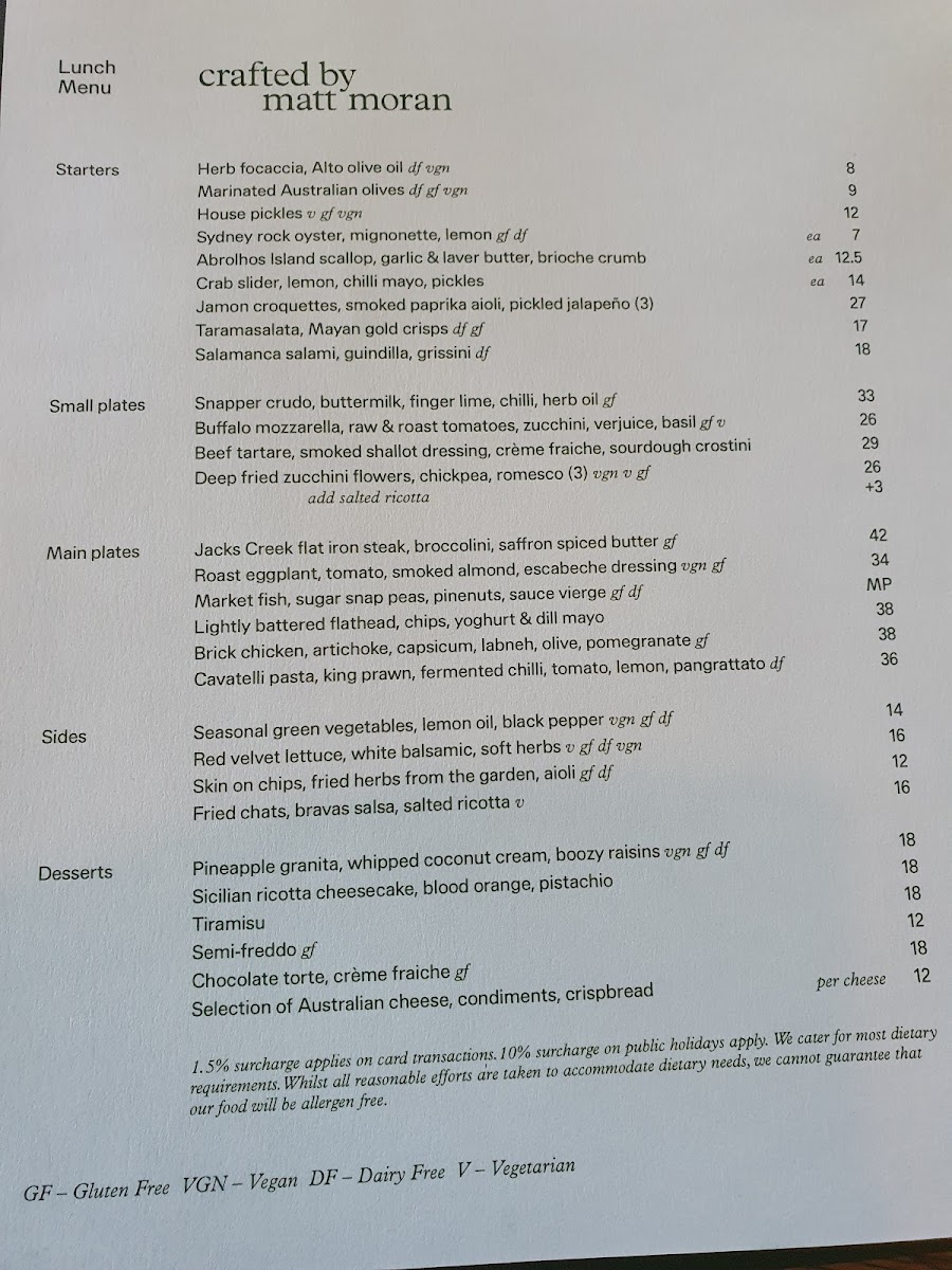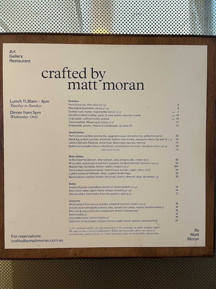 Crafted by Matt Moran is a culinary haven located on Art Gallery Rd in Sydney, offering an exquisite dining experience. This restaurant captivates patrons with its stunning views overlooking the wharf and a menu that masterfully blends seasonal ingredients into creative small and main plates. Signature dishes include the grilled beef tenderloin and the Butternut pumpkin Socca, which showcase Matt Moran's exceptional craftsmanship. Guests rave about the attentive staff, vibrant atmosphere, and thoughtfully curated desserts, such as the upside-down pineapple polenta cake. Whether for a special occasion or a rainy day refuge, Crafted by Matt Moran has quickly become a must-visit gem in Sydney's dining scene.