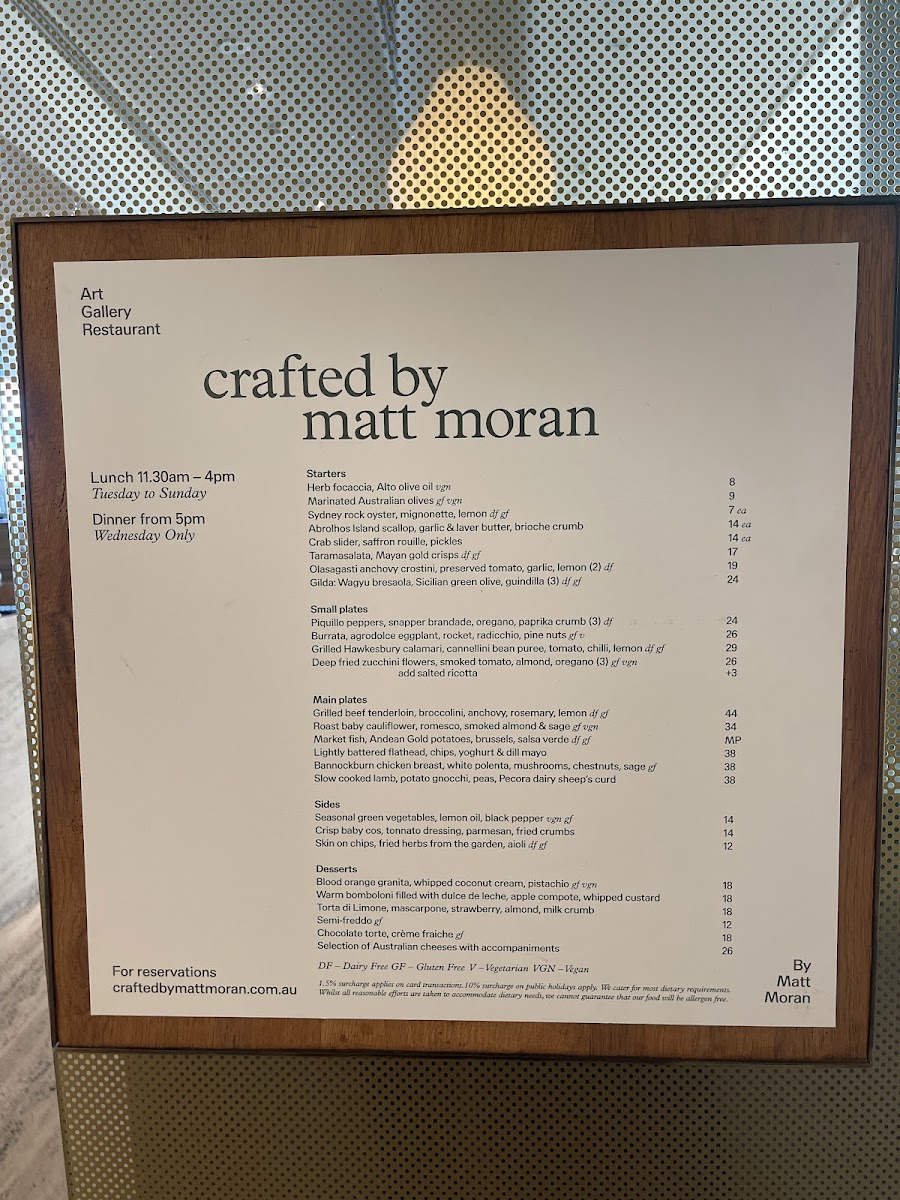 “ Enjoying art is even better with a light lunch and a gin and tonic, and Crafted by Matt Moran delivers on both fronts. Perched inside the gallery with stunning views over Sydney, this charming eatery is the perfect spot to recharge after soaking in the exhibits. Sure, you’re just strolling through the gallery, but the mental workout of taking in all that creativity can work up an appetite. The menu keeps things simple yet delightful—think jamón with stone fruit, so good you might forget to take a photo (I certainly did). Great art deserves great food, and here, they complement each other beautifully. ”